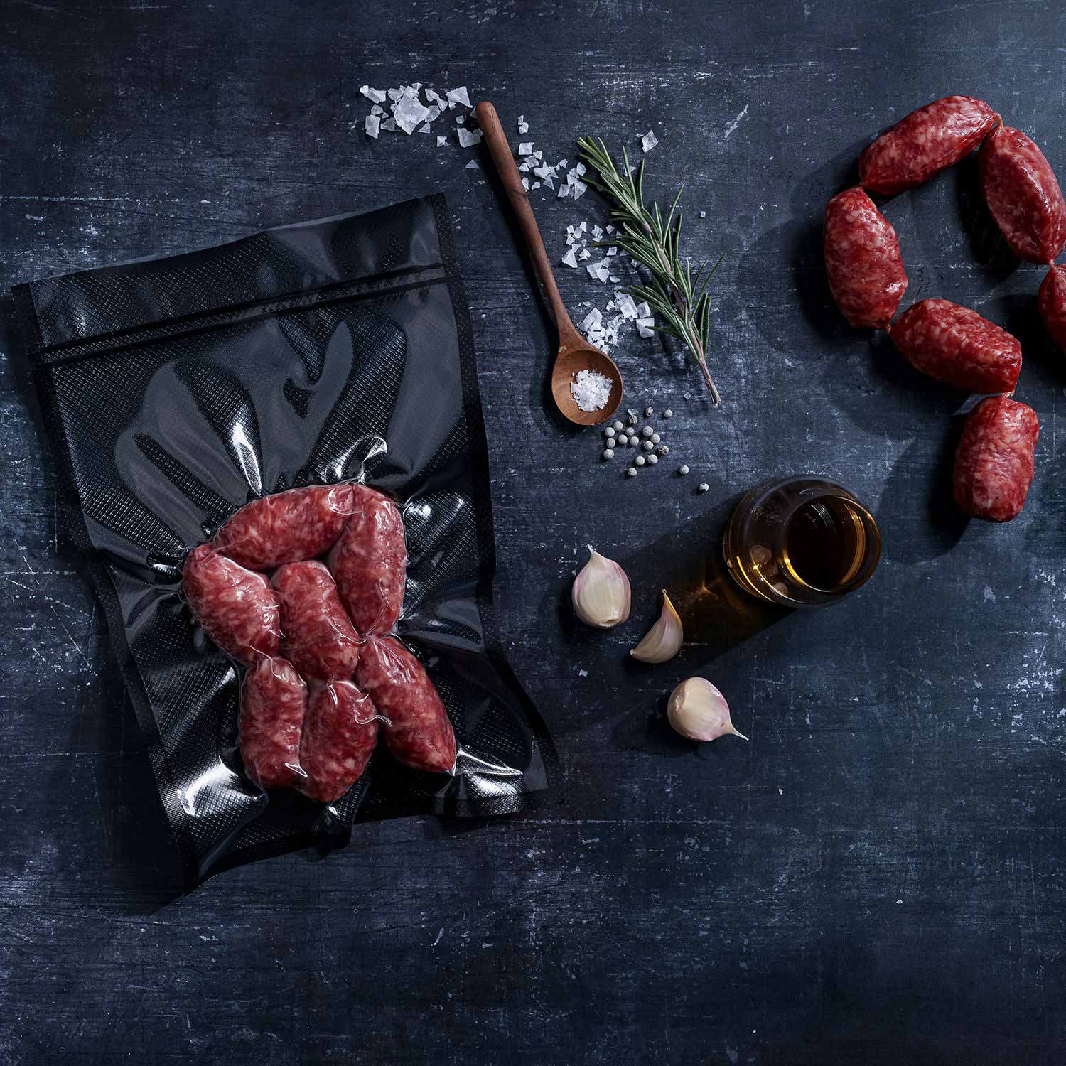 Starke Vakuumbeutel in schwarz mit Struktur, in ca. 120 µ Folienstärke. Ideal für scharfkantige Produkte oder bei besonders langer Aufbewahrungszeit der vakuumierten Ware.